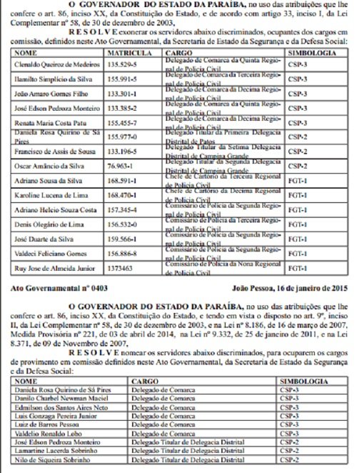 Ricardo Coutinho também promoveu mudanças na direção da cadeia pública de Caaporã, Pilar e Alhandra. Ele ainda nomeou Alessandro Lima da Silva como chefe da Penitenciária Padrão Regional de Cajazeiras e, Vitoriano Ananias Santos Filho para ocupar a chefia de Segurança e Disciplina da cidade.